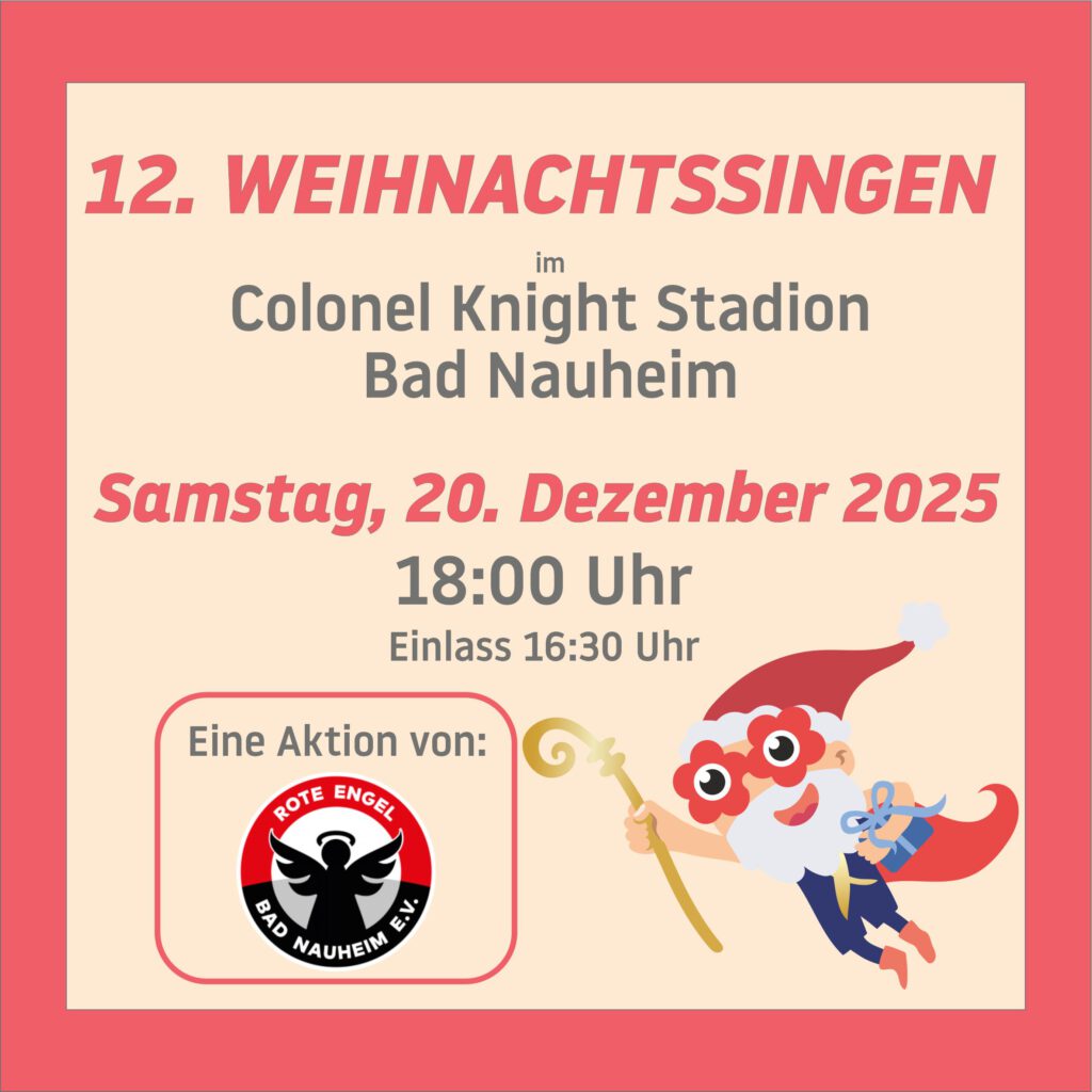 Auch in diesem Jahr laden die „Roten Engel“ des EC Bad Nauheim wieder zum traditionellen Weihnachtssingen ein – ein echtes Highlight in der Adventszeit!