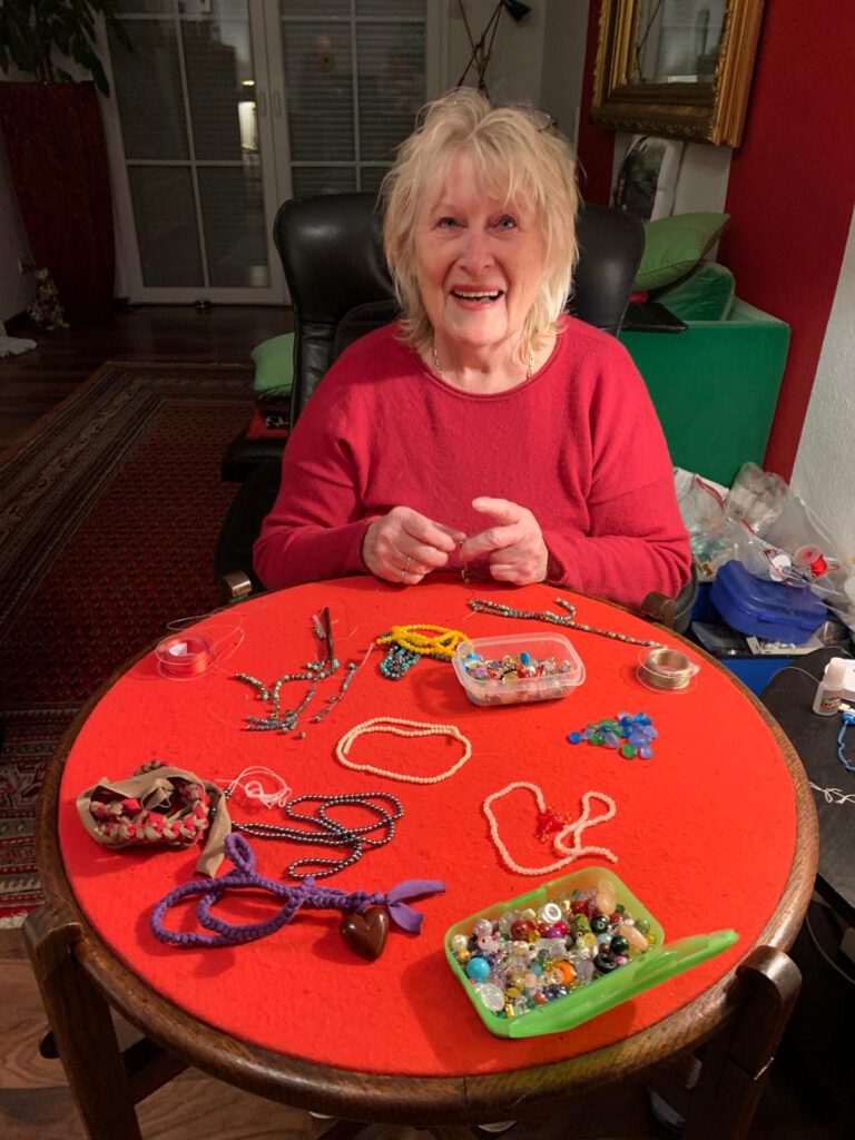 Durch den Verkauf von liebevoll selbsthergestelltem Modeschmuck.