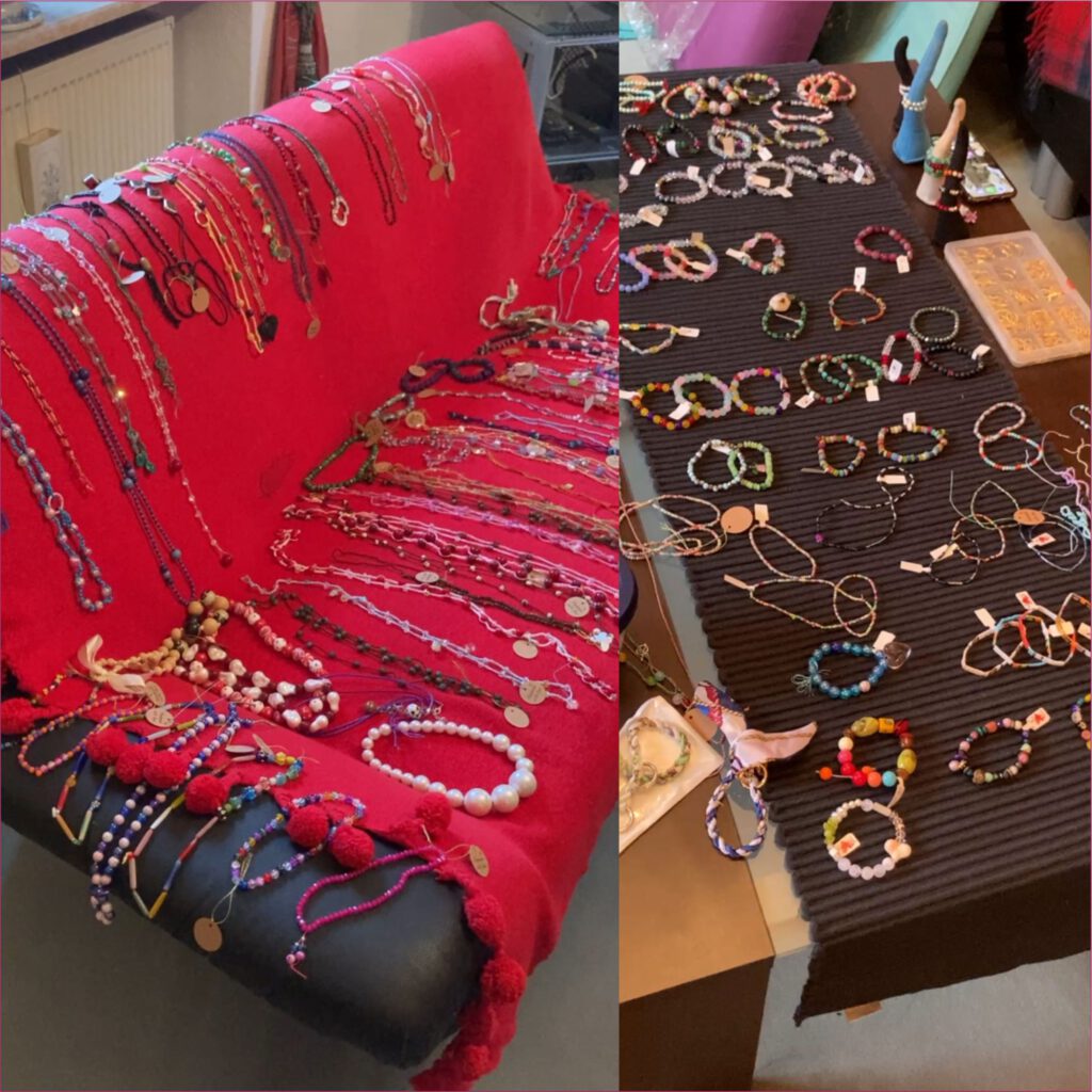 Die wunderschönen Stücke – darunter Ringe, Armkettchen, Halsketten, Anhänger sowie aufwendig gehäkelte Taschen in verschiedenen Farben und Formen – wurden von MonikaHajenski mit großer kreativer Leidenschaft und wochenlanger Handarbeit gefertigt.