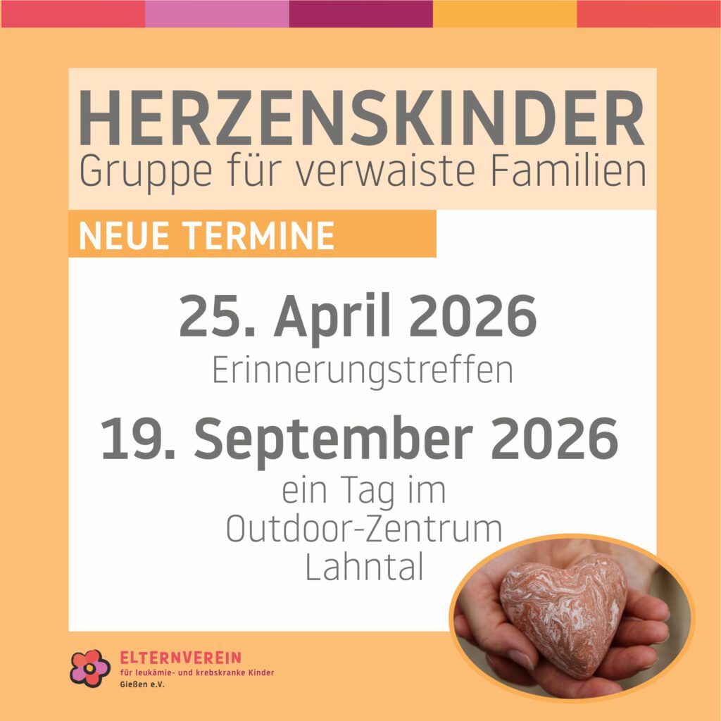 Mit unserer HERZENSKINDER-Gruppe wenden wir uns an Familien, die ihr Kind während der Behandlung auf der onkologischen Kinderstation Peiper der Universitätsklinik Gießen verloren haben.