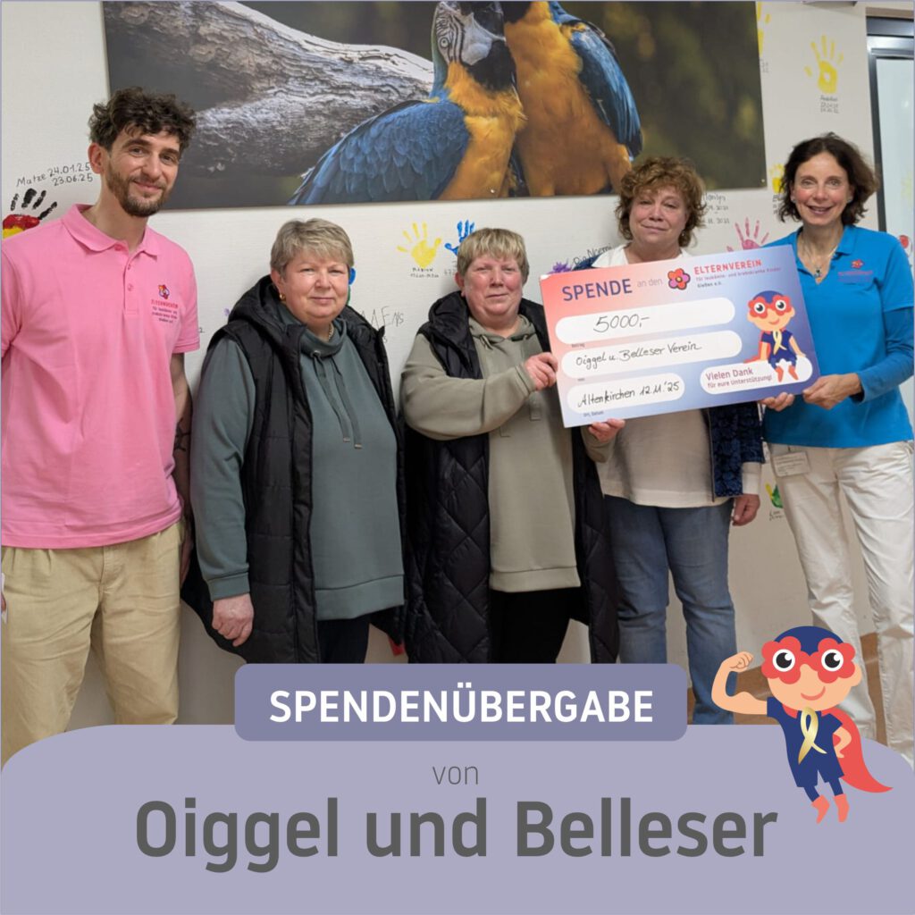 Philipp Joester und Corinna Altinkilic nahmen vor Station Peiper die Spende über stolze 5.000 Euro dankbar von den „Oiggel und Belleser“-Frauen Christiane Gröf, Claudia Weber und Anette Haeßle entgegen.