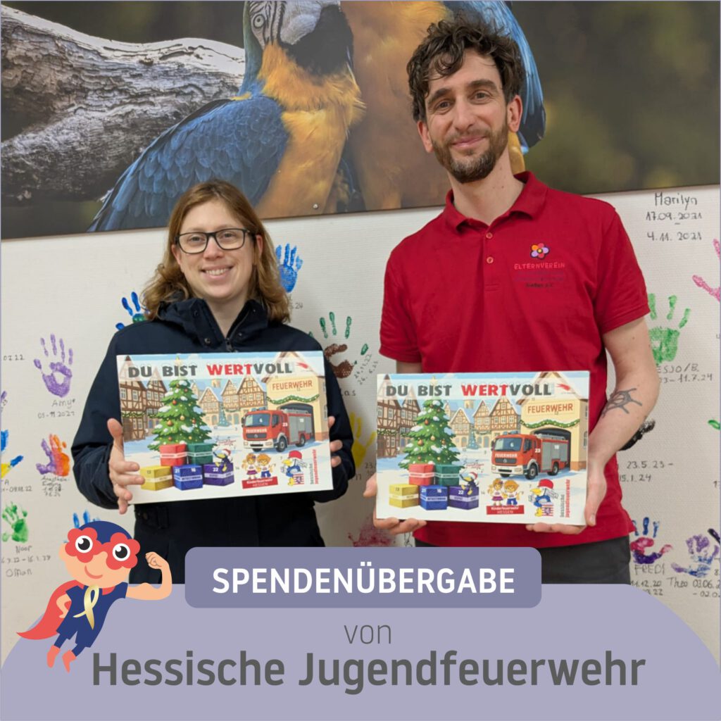Eine besondere Freude bereitete uns die Hessische Jugendfeuerwehr im LFV (HJF), der landesweite Zusammenschluss von rund 2.150 Jugendfeuerwehren in ganz Hessen mit Sitz in Marburg-Cappel. In Vertretung für die HJF überbrachte Vanessa Kunadt insgesamt 25 liebevoll gestaltete Adventskalender auf unsere Station Peiper.