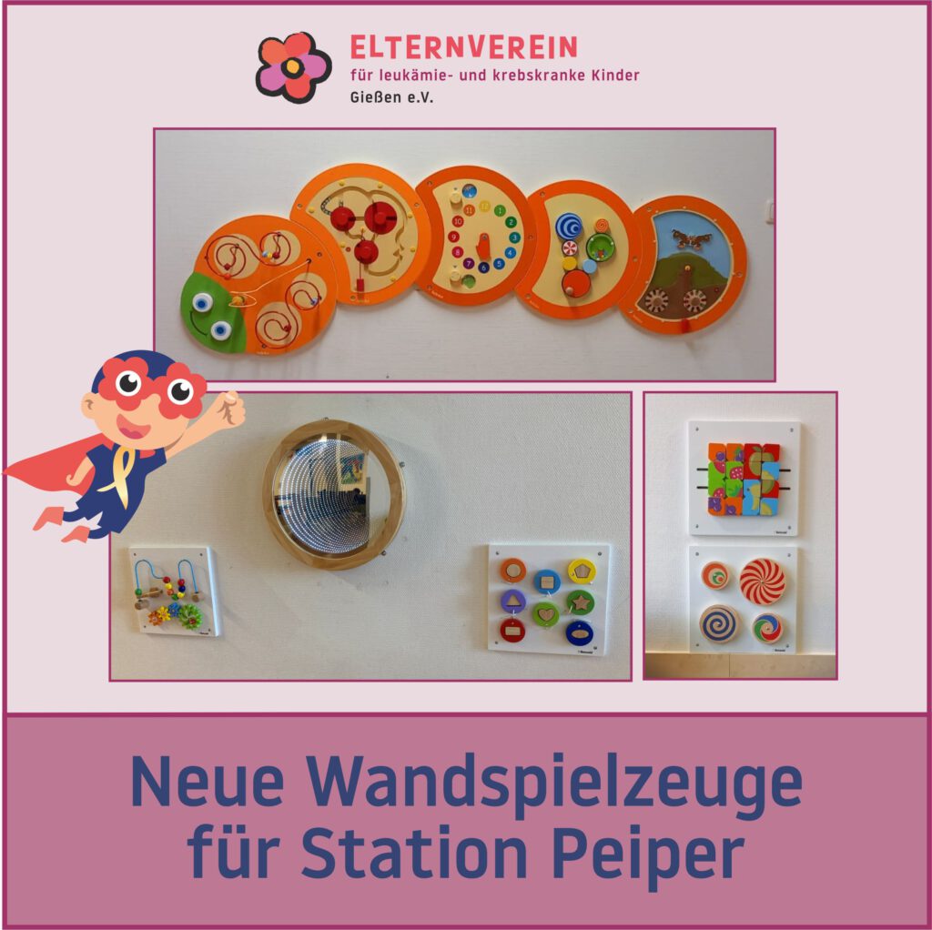 Im Wartebereich vor Station Peiper und der Tagesambulanz konnten dank großzügiger Spendengelder die alten Wandspiele durch moderne, farbenfrohe und interaktive Elemente ersetzt werden.