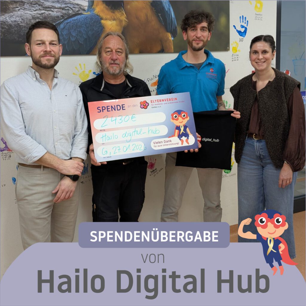 Im Rahmen einer internen Spendenaktion von Hailo digital_hub aus Gießen konnten die MItarbeiter einen individuellen Betrag – angelehnt an die eigene Personalnummer – festlegen. Dieser wurde unkompliziert über die Gehaltsabrechnung einbehalten.