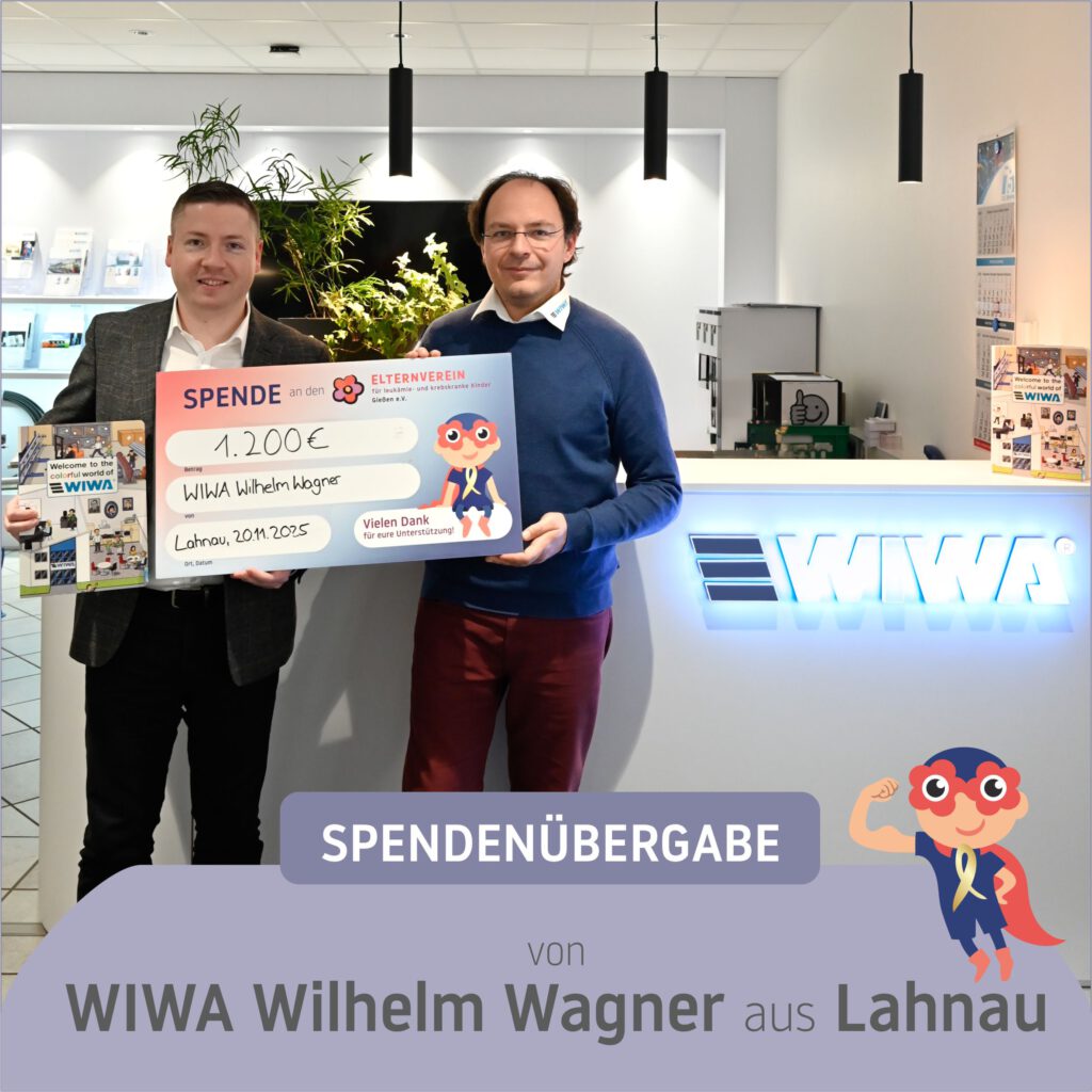 Dank dieser großartigen Aktion konnte WIWA Wilhelm Wagner GmbH & Co. KG zwei Einrichtungen unterstützen, die in der Region wertvolle Arbeit leisten. Der Spendenerlös wurde zu gleichen Teilen an unseren Elternverein sowie an die Tafel in Wetzlar weitergegeben. Daniel Heller besuchte WIWA in Lahnau und durfte den symbolischen Spendenscheck über 1.200 Euro entgegennehmen.
